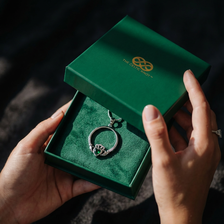 She'll reach for it every morning. The Claddagh Pendant rests right where it belongs — close to her heart, a daily reminder of the love you share.