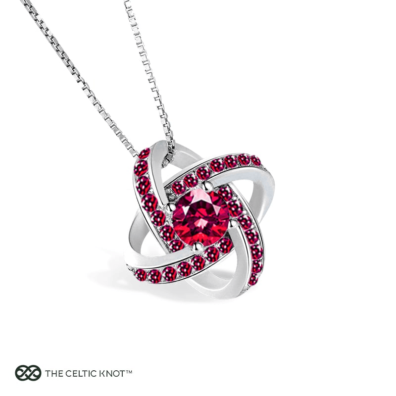 The Celtic Knot™ 18K Garnet Pendant is for the woman who loves deeply and lives fully. With vibrant ruby-red tones and intricate knotwork, it carries an eternal Irish embrace close to her heart.