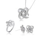 Adorned in 18K white gold finish and twinkling with emerald-green stones, this trio is the pinnacle of Celtic elegance – a complete matching set that any emerald lover would swoon over.