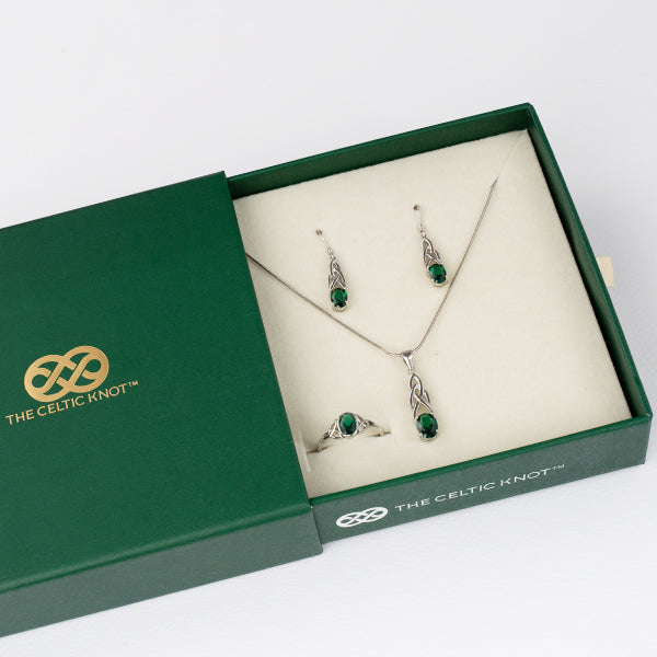 The Celtic Magic™ Emerald Trinity Set unites our signature pendant, earrings, and ring in a harmonious trio inspired by the ancient Celtic belief that good things come in threes.