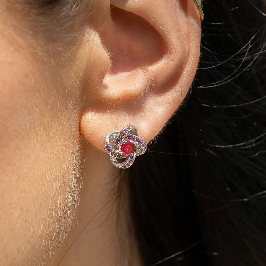 The Celtic Knot™ 18K Garnet Earrings bring January’s vibrant birthstone to life, framing her face with the warm glow of the Emerald Isle. Each earring showcases a garnet-red stone nestled in an eternal knot, symbolizing the endless connections of love and friendship.
