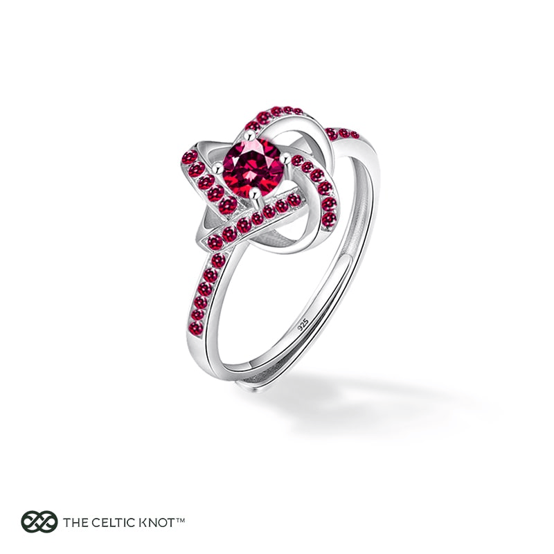 The Celtic Knot™ 18K Garnet Ring is a circle of infinite love and Celtic pride. A deep red garnet crowns this ring, glowing like a cozy Irish fireside on a January night. The intertwining knot band isn’t just for show – it’s a beloved symbol of faith, love, and hope, forging a connection to generations of Irish tradition.